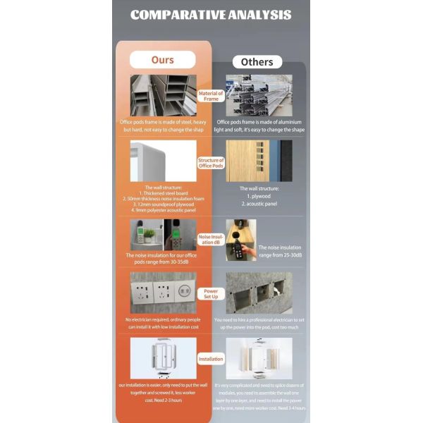 For acoustic performance, the pod utilizes a dual acoustic protection structure, featuring high-quality, eco-friendly acoustic cotton at its core, paired with high-density exterior sealing panels.